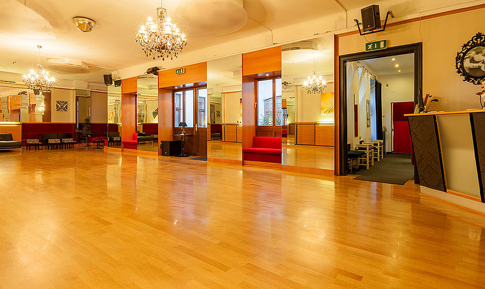 Die Tanzschule ist im ehemaligen Pferdestall eines Kutscherhauses im Zentrum von Wien Währing untergebracht. Die Lage im ruhigen Innenhof, der Blick auf den Turm des Währinger Bezirksamts - insbesondere am Abend bei Beleuchtung! - der Rundum-Zugang von Tanzsaal ins Freie, in den Innenhof...viele Paare, die das erste Mal die Tanzschule betreten, sind überrascht und angetan.